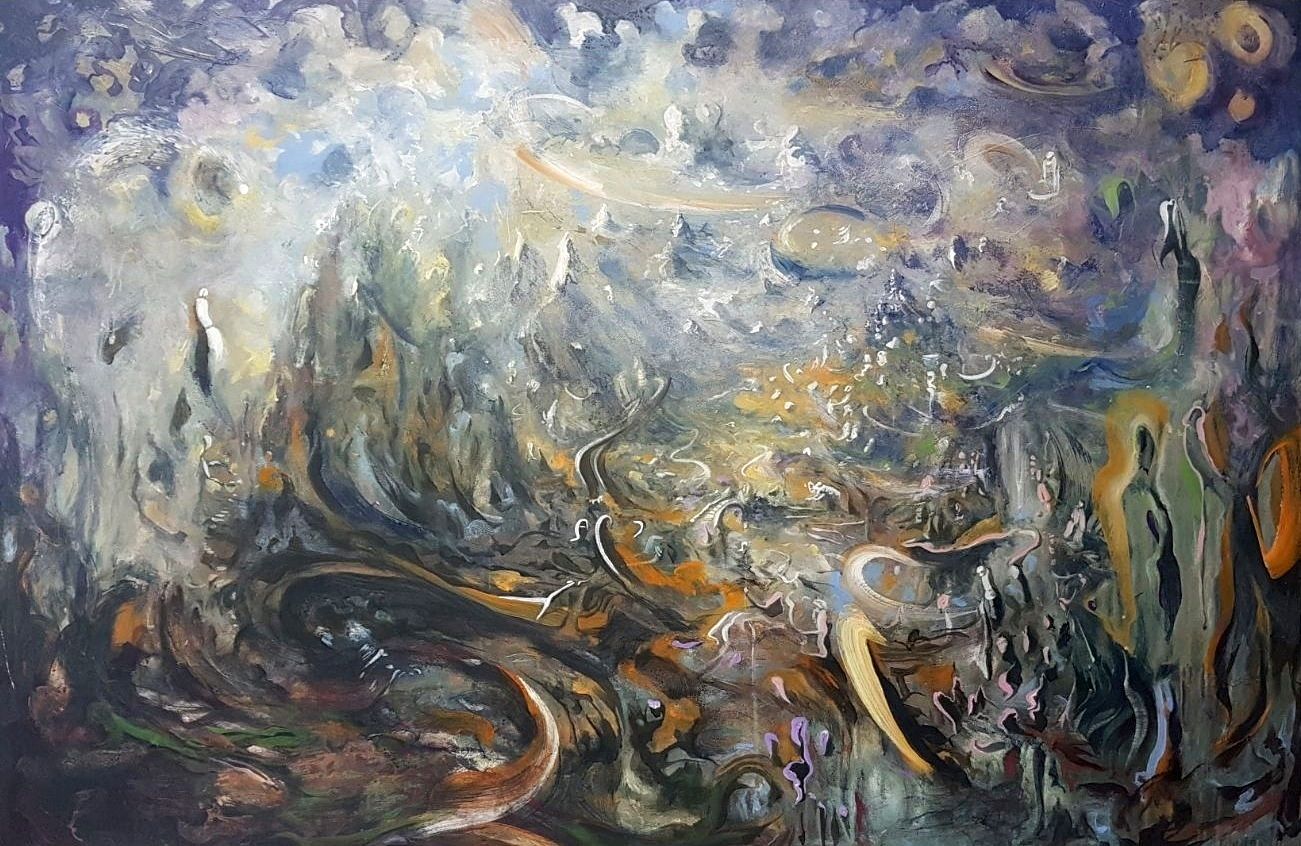 Acrylic, mixed media and oil on canvas